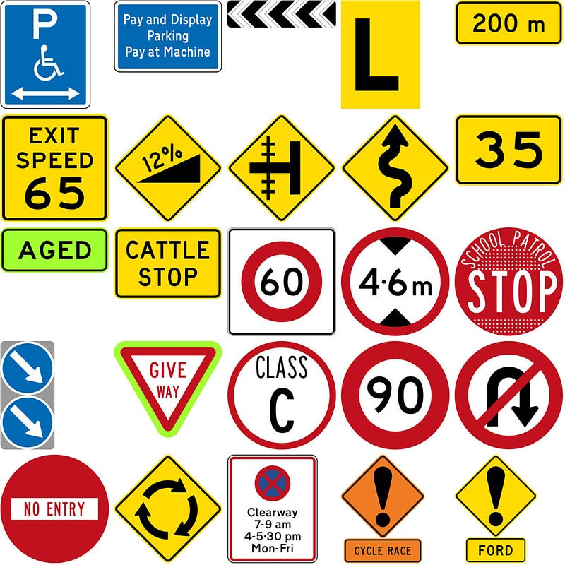 Kiến thức về các loại biển báo như: giới hạn tốc độ, các biển báo nguy hiểm và biển báo hướng dẫn