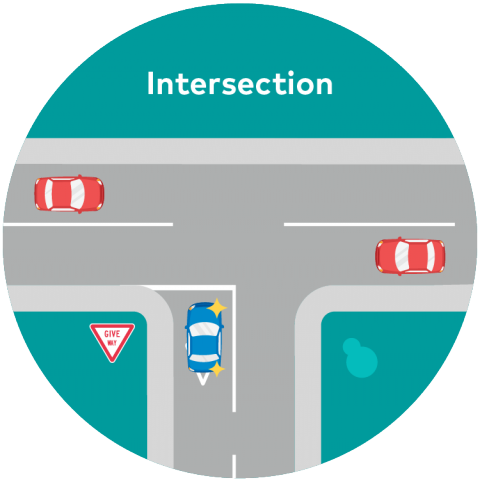 Tín hiệu đèn giao thông, biển cảnh báo dừng lại, nhường đường tại ngã tư, đường giao nhau, bùng binh, …